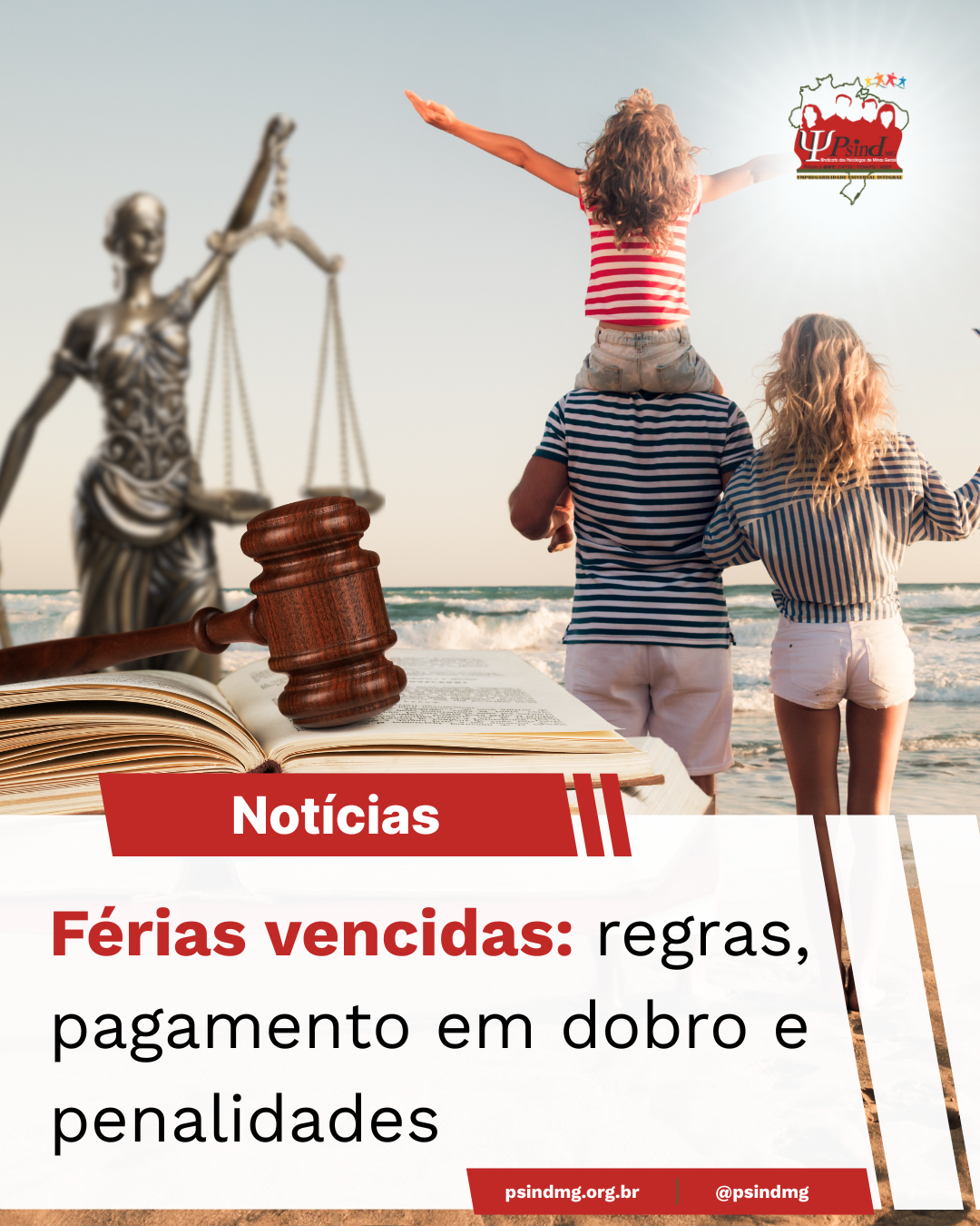 O Sindicato dos Psicólogos do Estado de Minas Gerais (PSIND-MG) alerta sobre o direito sobre as férias de profissionais vinculados a empresas. As férias vencidas ocorrem quando a empresa não concede o descanso do trabalhador dentro do prazo previsto na Consolidação das leis do trabalho (CLT). Quando isso acontece, a lei determina que as férias sejam pagas em dobro, com adicional de 1/3.